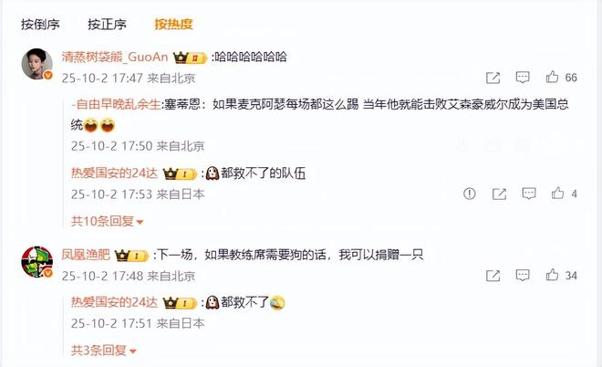 安被进三!国安官微遭自家球迷围攻:若教练席缺狗,我可以捐一只
