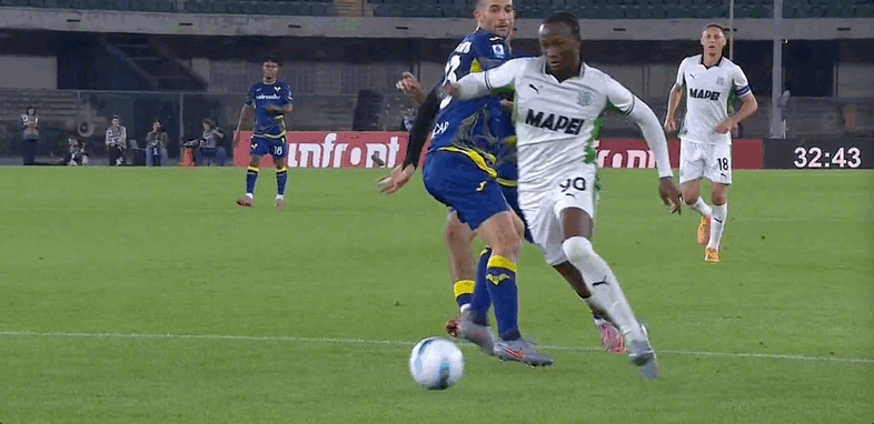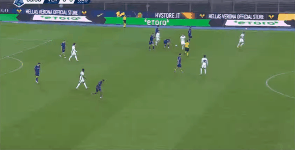 71’法德拉造点,皮纳蒙蒂主罚被扑补射命中,维罗纳0-1萨索洛
