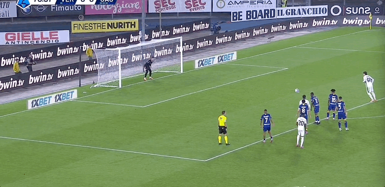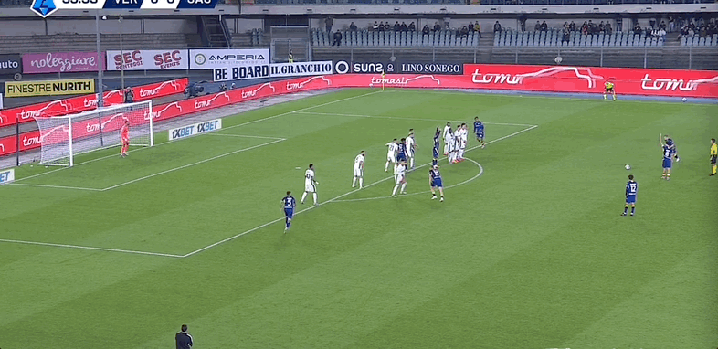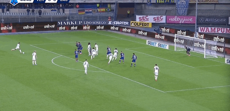 60’维罗纳后卫怒射自家门柱,门将完成关键扑救