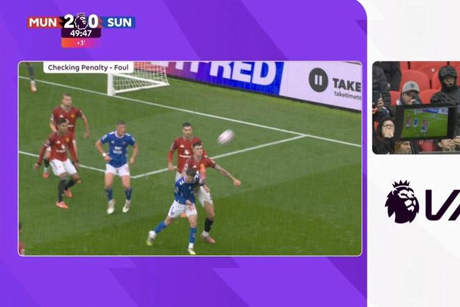 主裁判宣布:“经过回看,曼联球员并没有犯规。他没有与进攻球员的头部发生接触。由于在作出判罚时球已经出界,最终判罚为角球。”